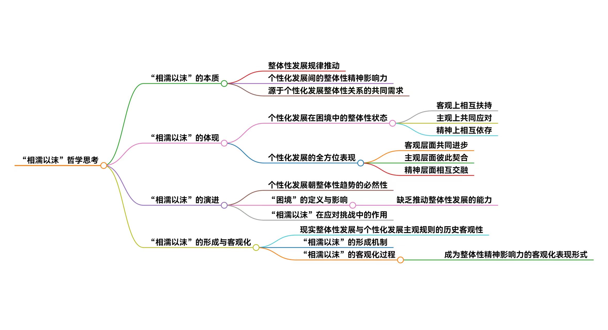 例如,在全球化的背景下,各国经济相互依存度不断提高,形成了现实的整体性发展趋势。同时,各国在追求自身经济发展的过程中,也形成了各自的主观规则,如贸易政策、产业战略等。在这种历史客观性的作用下,各国之间必然会形成“相濡以沫”的关系,通过合作、协商等方式共同应对全球经济面临的挑战,如气候变化、贸易保护主义等。而且,“相濡以沫”必然会不断客观化,即这种互助合作的关系会逐渐成为一种稳定的、制度化的存在,为个性化发展之间的整体性发展提供持续的保障。