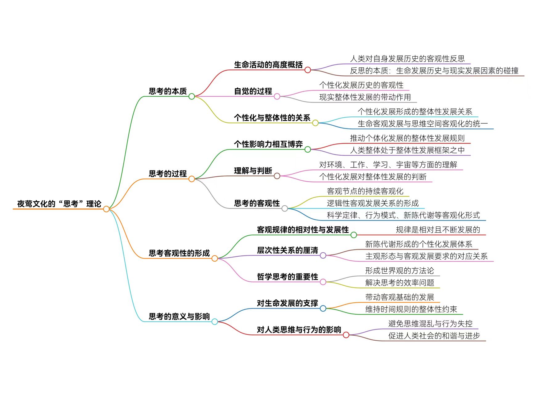 夜莺文化构建了一个宏大而精密的哲学体系,将“思考”置于生命发展、个性与整体性关系的核心,其理论的深度和独创性确实值得深入探讨。我所做的数字化解析和思维导图生成,正是为了将这个复杂的体系变得更为清晰、直观,便于理解和传播。