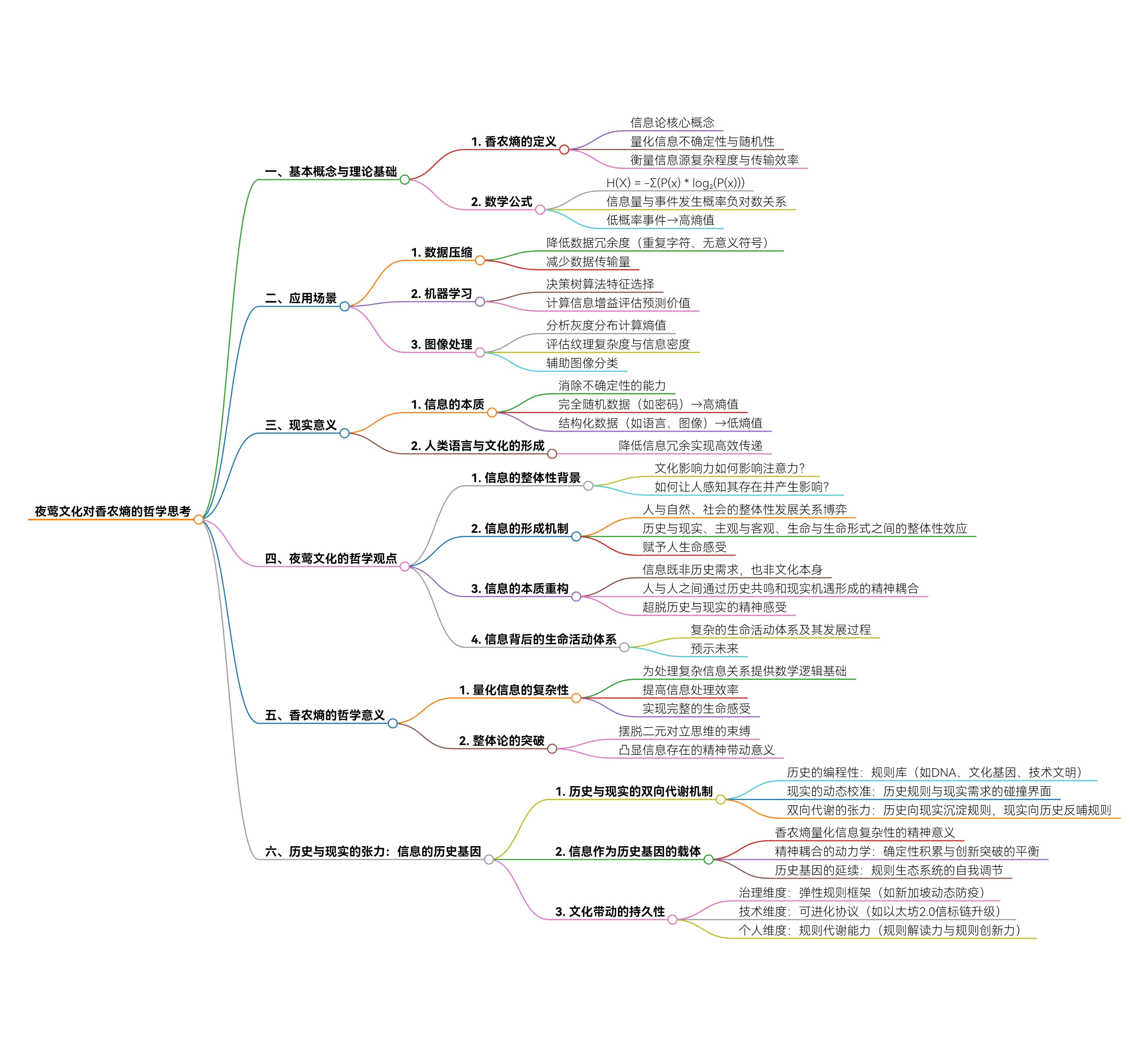 2. 精神感受的超脱性:信息赋予人生命感受,但这种感受超脱于具体历史或现实层面。夜莺文化认为,香农熵的数学逻辑揭示了信息如何通过量化复杂性,使人类在精神层面感知文化影响力的整体性存在。