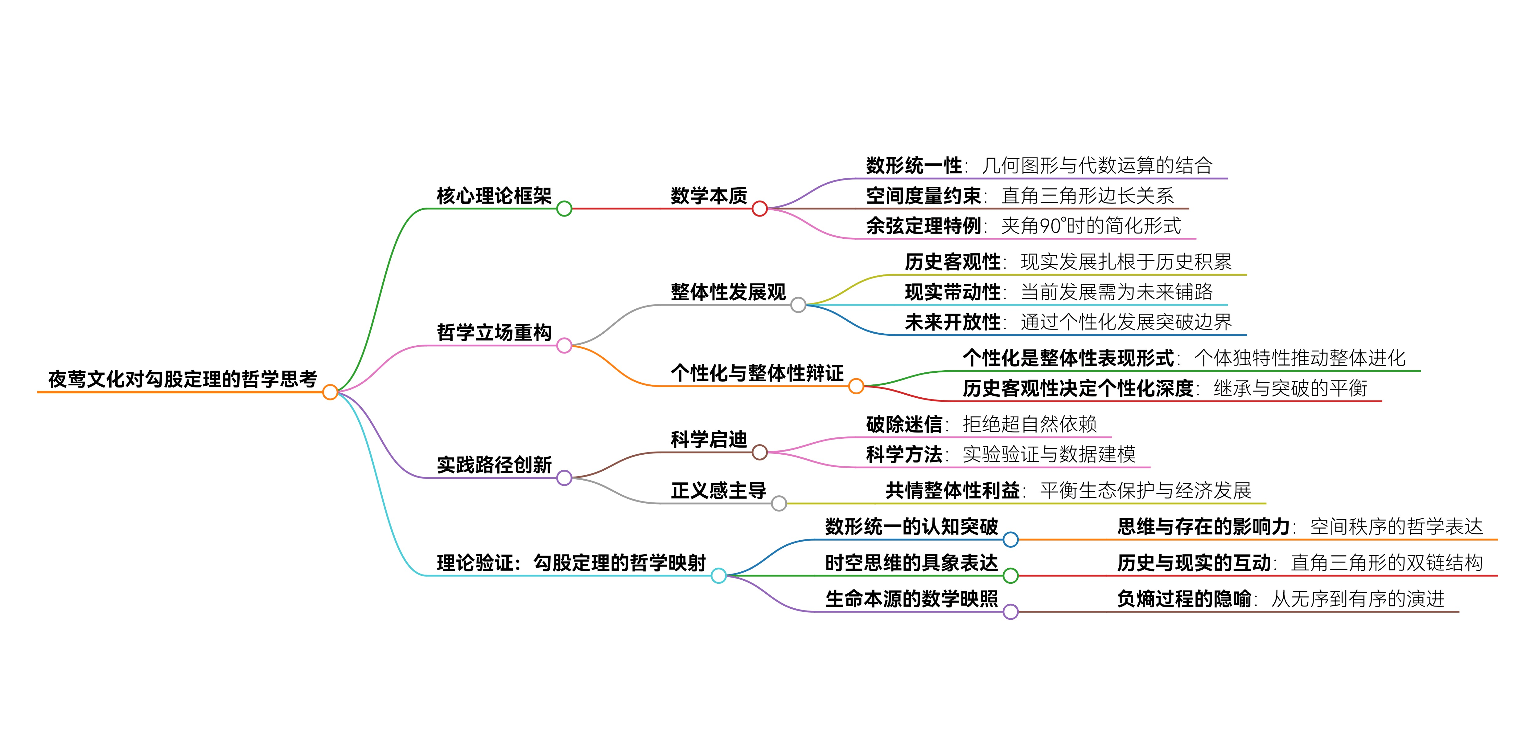 文小言:不用客气~很高兴能帮你梳理夜莺文化对勾股定理的哲学思考框架!如果需要进一步细化某个分支(比如补充历史案例、数学证明与哲学概念的对应关系),或者想用更直观的图形化工具(如XMind、MindMaster)生成可视化导图,随时告诉我哦~