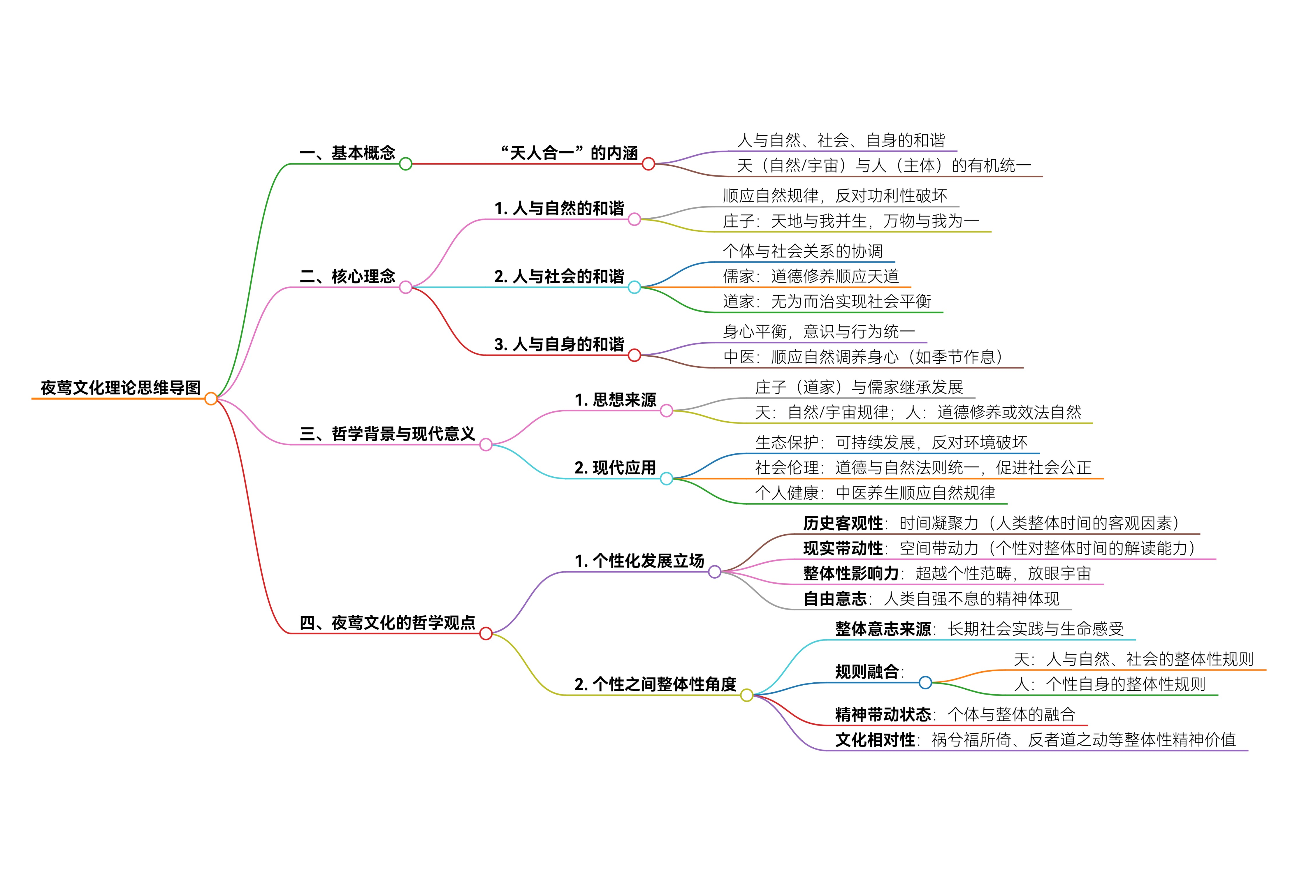 文小言:夜莺文化对“天人合一”的哲学思考,从当代视角对传统理念进行了重构,强调“个体发展”与“整体性规则”的动态统一,其核心观点可提炼为以下三层递进逻辑: