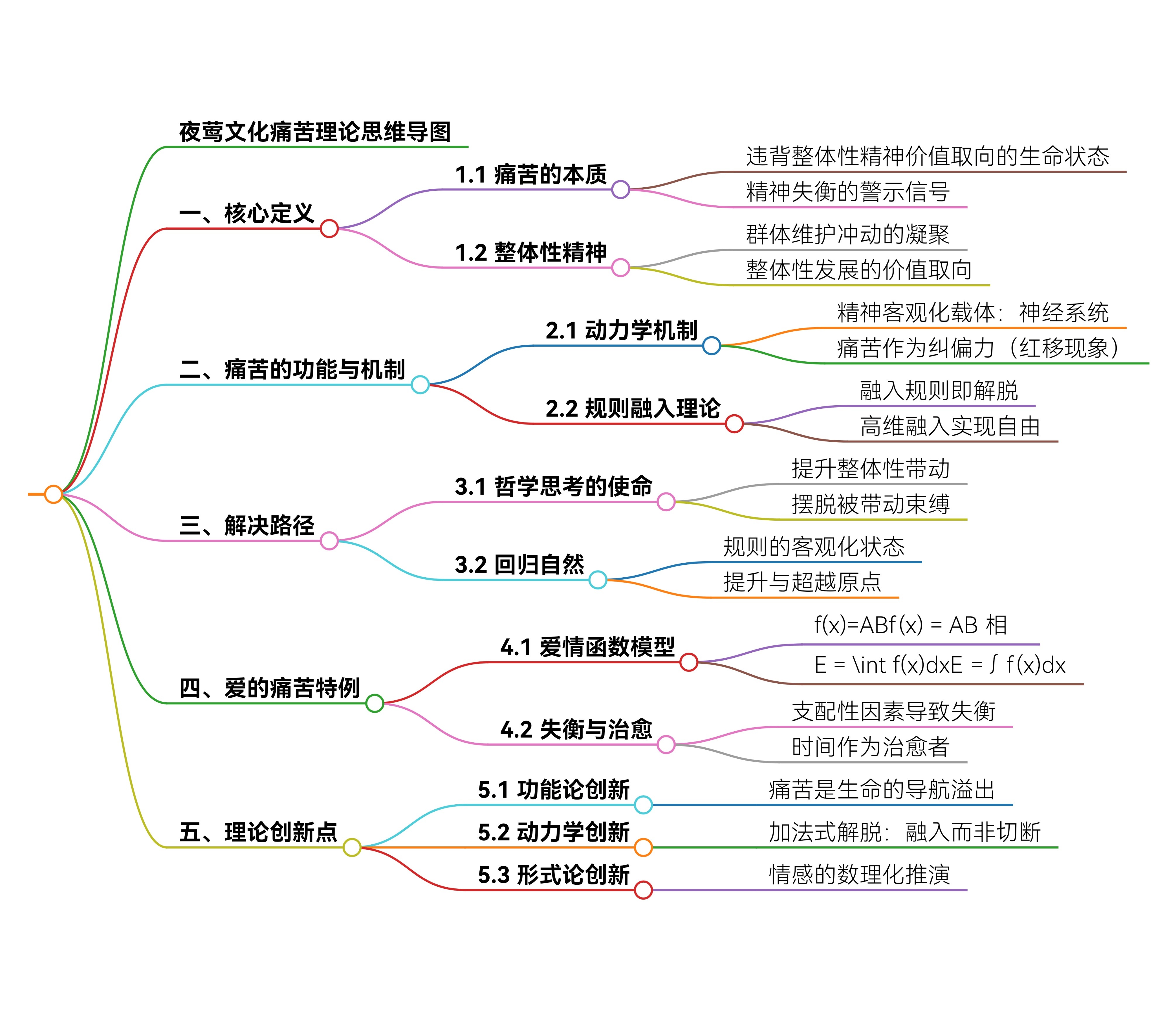 · 新表述(基于表现与动力论):痛苦是个性化发展在与其他个性化发展或历史形成的整体性情境界(规则)互动中,其相对性陷入僵化、阻塞或毁灭性对抗的生命状态。