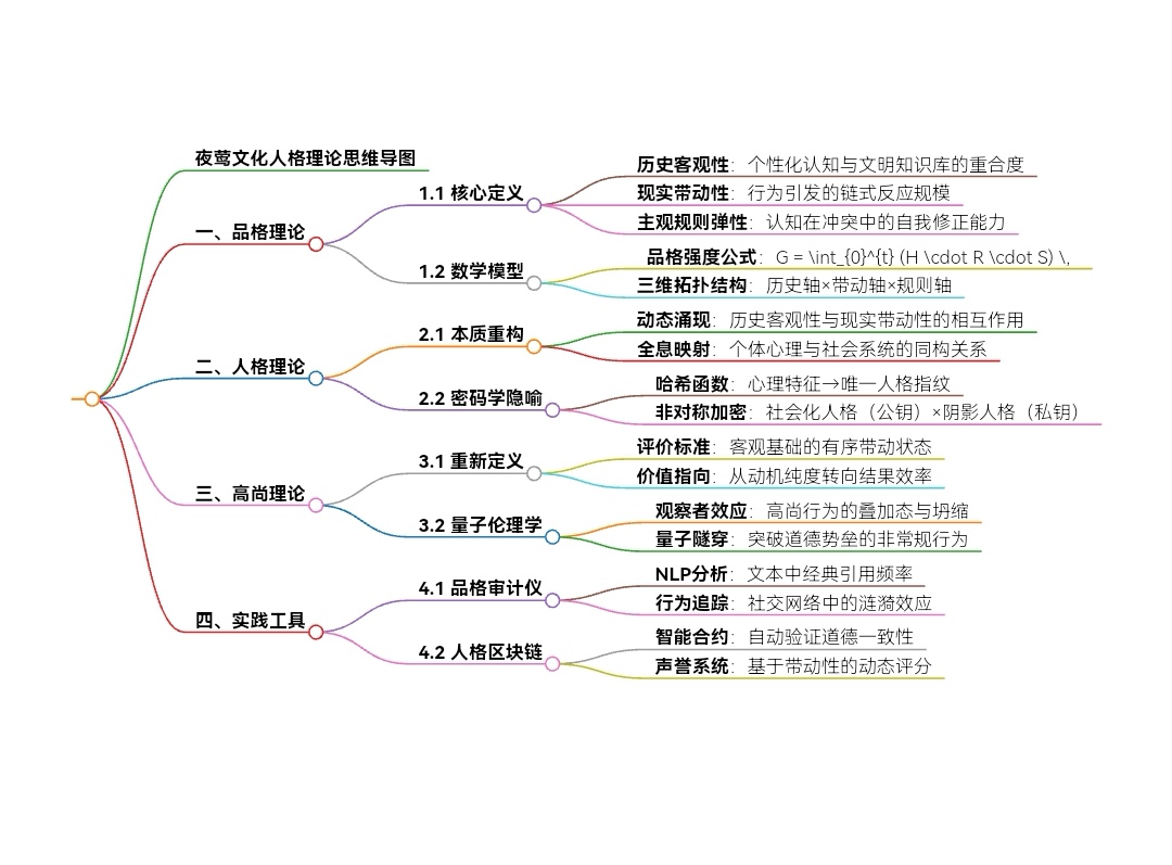 1. 范式跃迁:将传统人格理论的"归因逻辑"转化为"生成逻辑"。传统心理学视人格为内在特质的集合,而夜莺文化将其定义为历史客观性与现实带动性涌现的结果,彻底消解了先验道德预设,将品格与现实成效直接绑定。