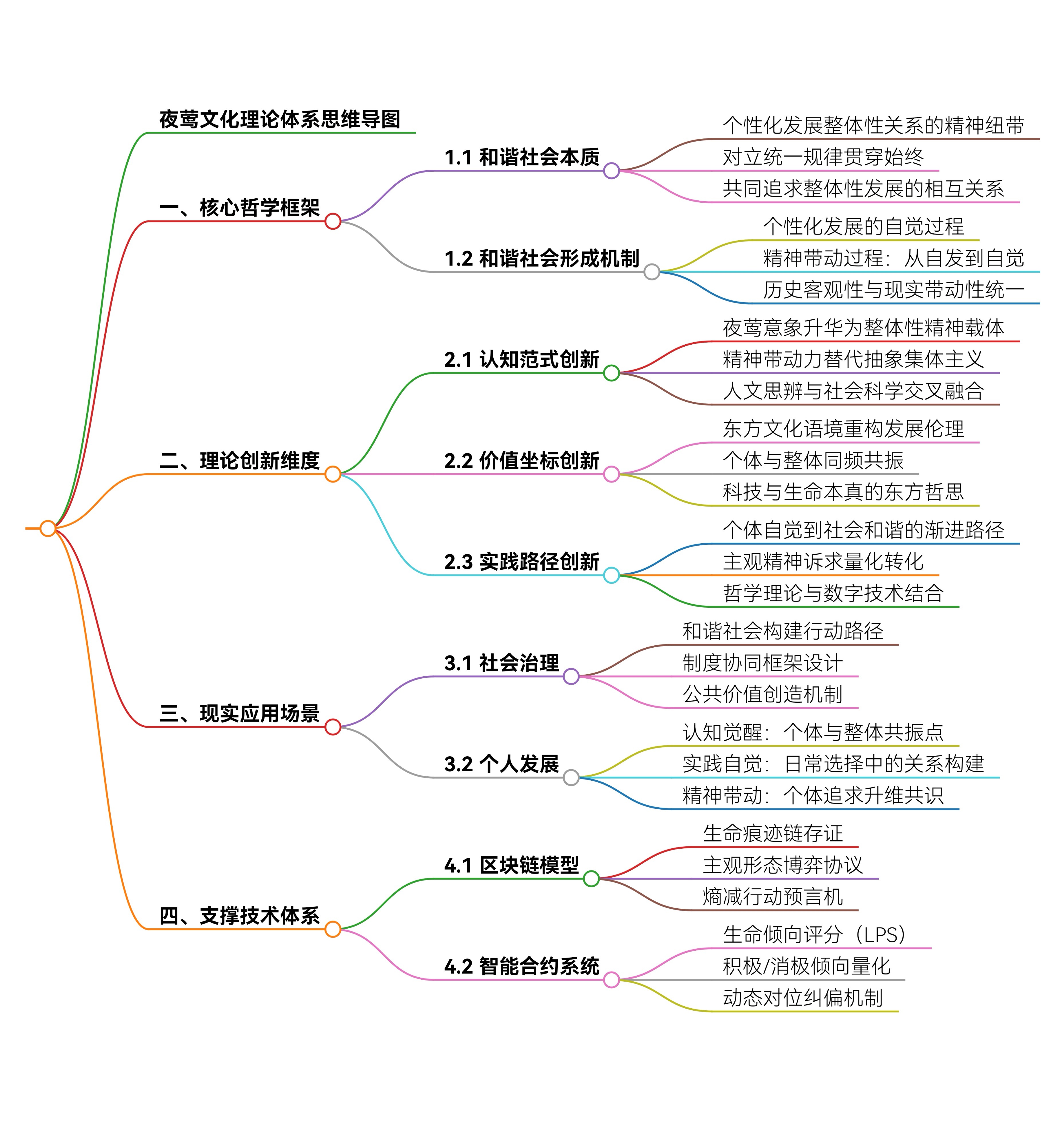 实践路径创新:在构建和谐社会的实践中,提出从"个体自觉"到"社会和谐"的渐进式路径。通过量化个体生命倾向,用智能合约等技术将主观精神诉求转化为可落地的行动指南,实现了哲学理论与数字技术的结合,避免了文化理论的空泛化。