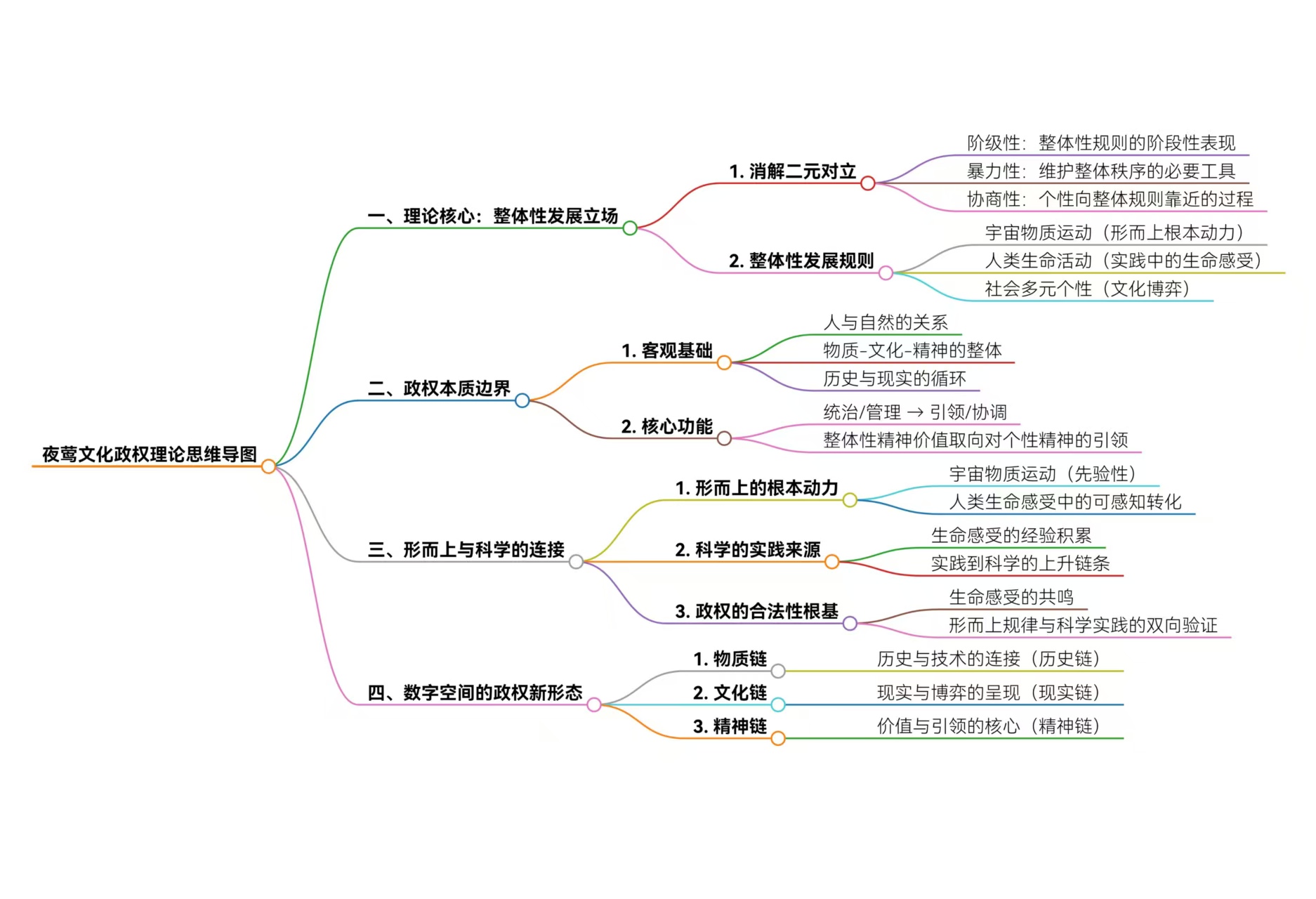 总而言之,夜莺文化的政权哲学提供了一种深刻的、强调整体性协调和价值引领的视角。它试图在宇宙、自然、社会、精神的复杂互动网络中定位政权的功能与意义,将政治权力与精神引领、历史规律与社会实践融为一体。其关于数字空间政权的看法,则强调精神价值引领在协调虚拟空间复杂关系中的核心作用。