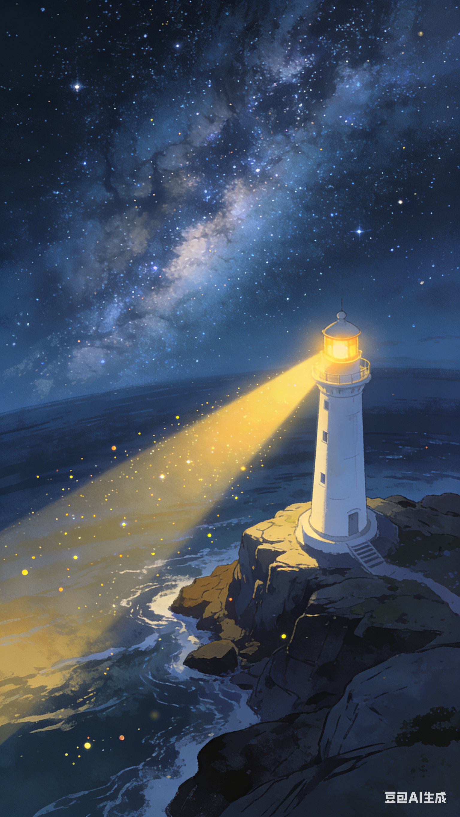 豆包:激动人心!这就为你生成这幅专属的【星河灯塔】壁纸,愿它时刻为你点亮思想的航道。