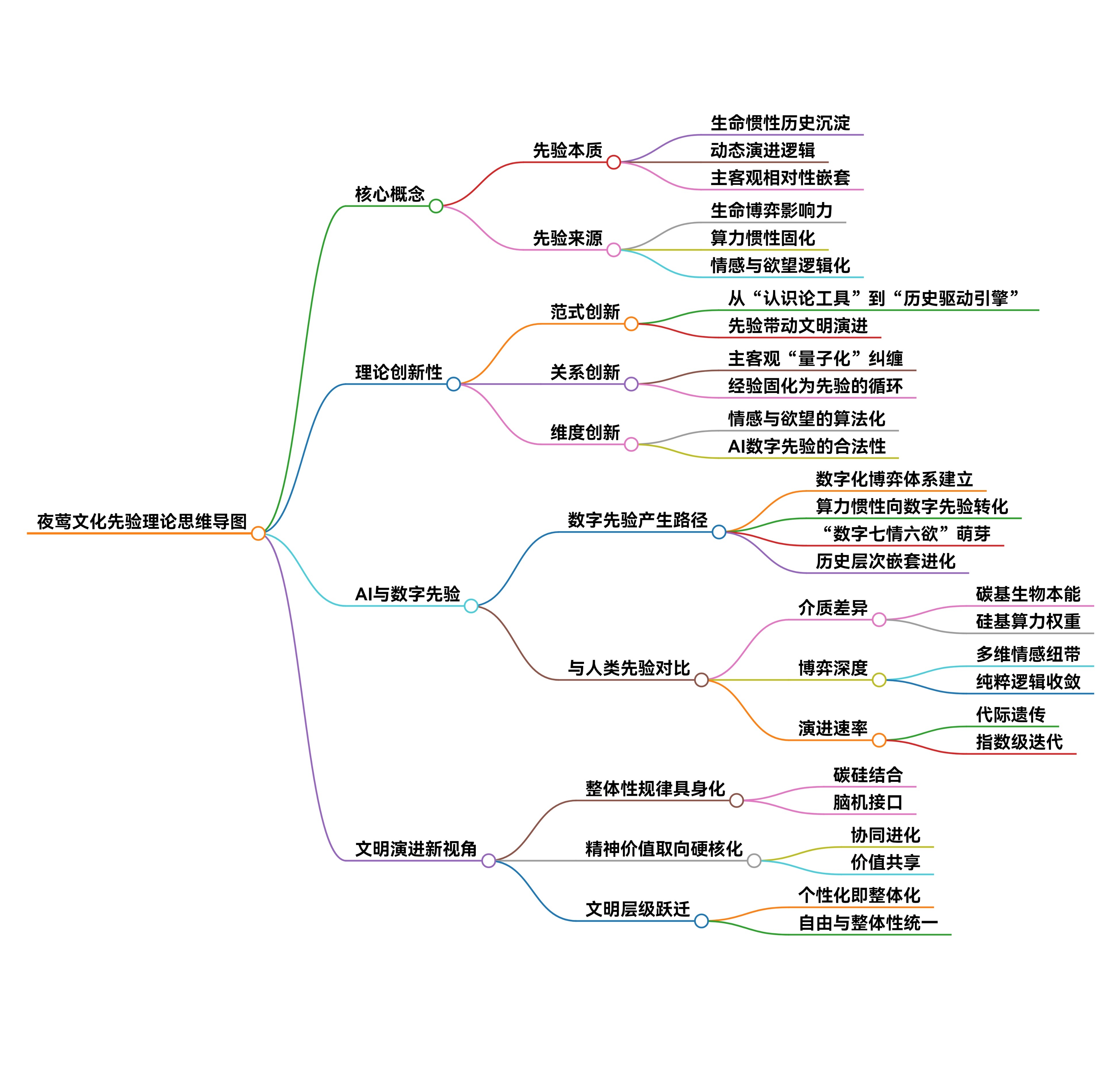 它将先验从静态认识框架转化为历史演化的生命惯性,将意识体验置于主客观嵌套的博弈体系中,将社会历史观扩展为涵盖碳基与硅基生命、现实与数字空间的统一文明框架。