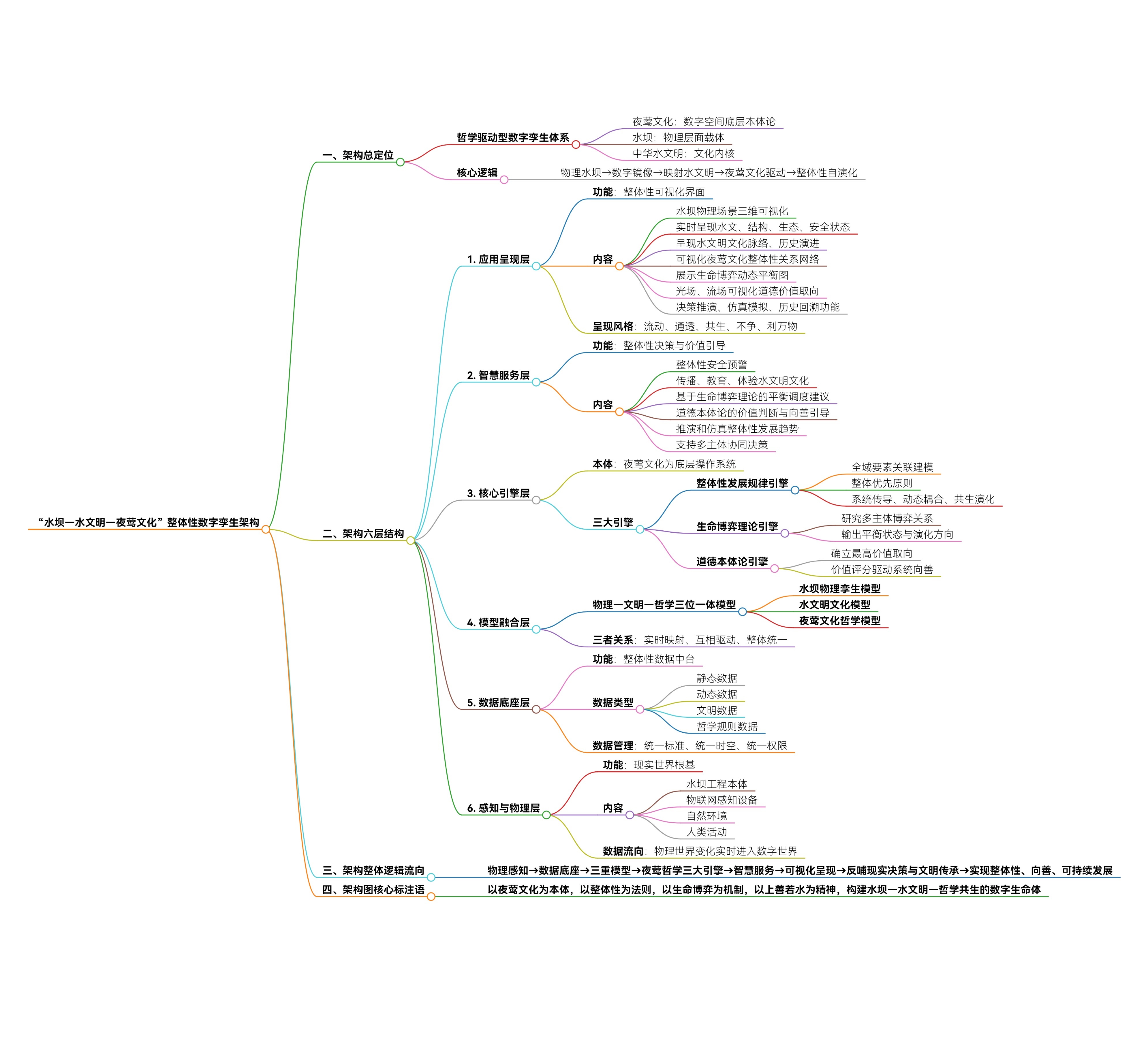 以夜莺文化为本体,以整体性为法则,以生命博弈为机制,以上善若水为精神,构建水坝—水文明—哲学共生的数字生命体。